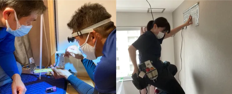 さくら電気サービスbyライフラボラトリィーでは、お客さまのご要望をしっかりと把握し、最適な施工を行なうことを心がけています。「すぐに引っ越すので安く済ませたい」「料金は気にせず、こだわって設置したい」など、それぞれの希望に沿ったサービスを提供します。また、家の中で施工するため、細心の注意を払っています。